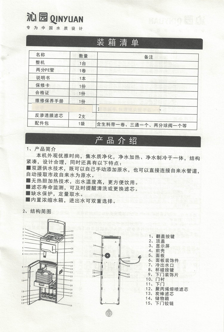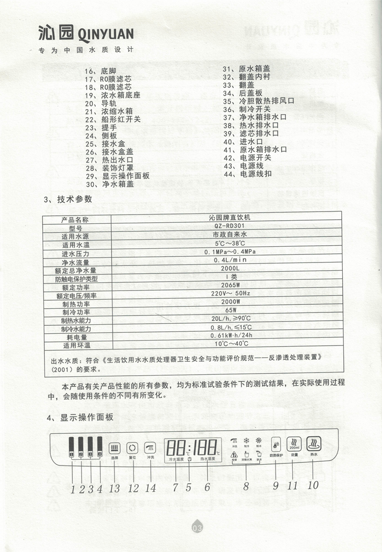 沁园QZ-RD301直饮机说明书及故障代码