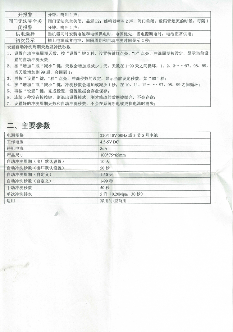 纯悦前置过滤器电子冲洗阀说明书