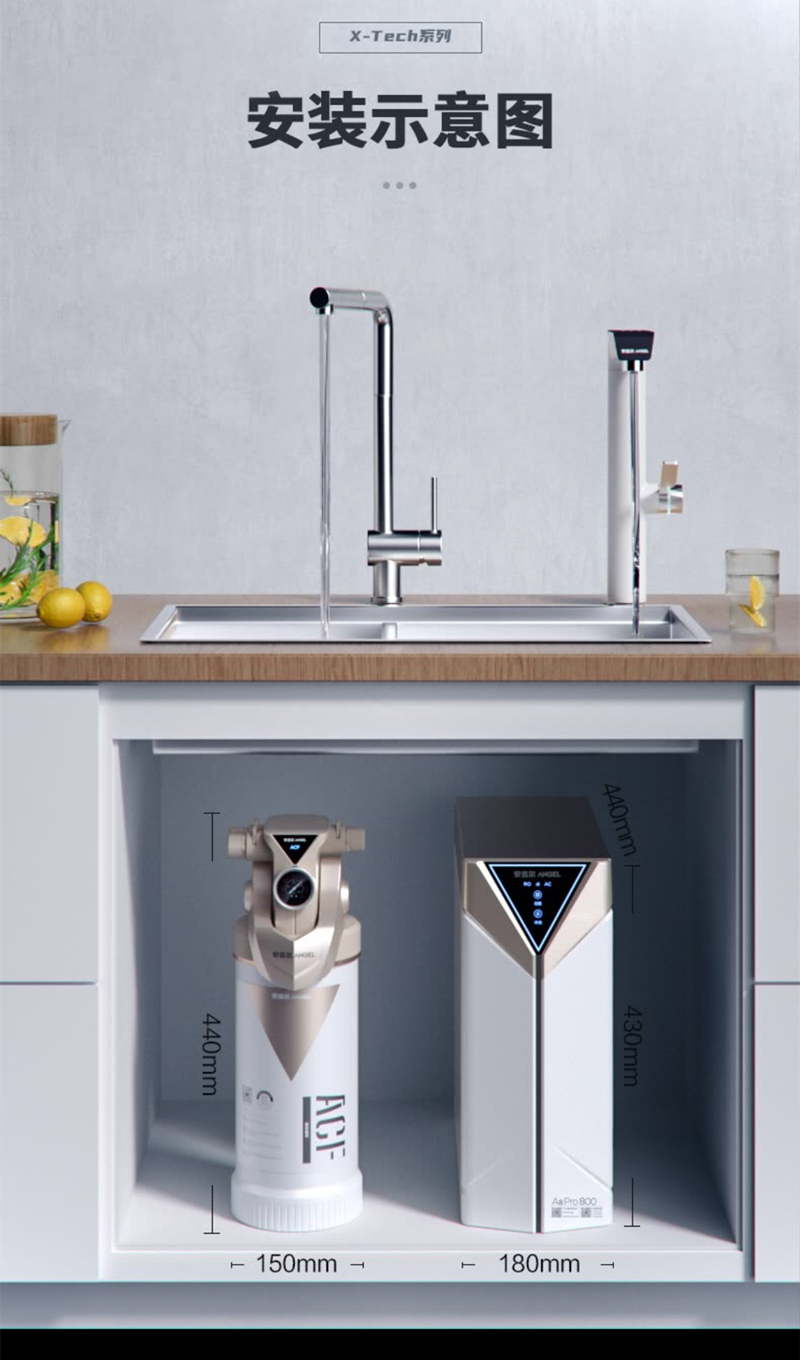 安吉尔X-Tech系列A8Pro800厨下净饮一体机 智控航天科技