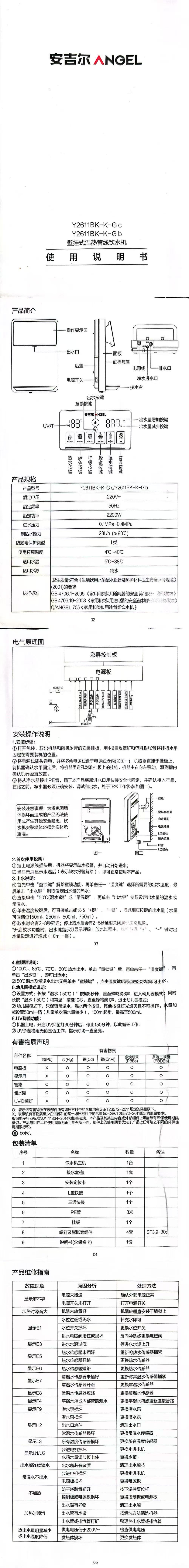 安吉尔商用管线机壁挂Y2611BK-K-Gc黑色故障代码