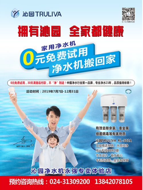 作为中国第一品牌沁园净水机服务商-沈阳金鑫峰净水设备有限公司,为普及消费者的饮水健康环境, 2019年在全市区范围内开展为期六个月的沁园净水机“拥有沁园,全家都健康”免费试用30天活动,从真正意义上降低了消费者使用净水机的门槛。