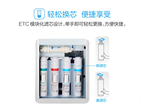 6大安全守护,安心使用; ETC模块化滤芯设计,单手即可轻松更换,方便快捷; 四级过滤系统,反渗透技术,出水更纯净; 步进式加热技术,逐步补水加热,出水更快、更省电。