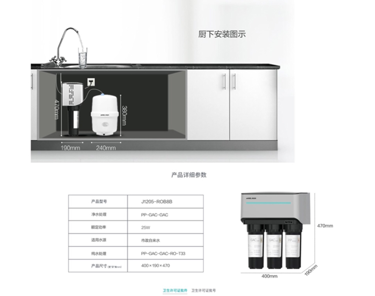 安吉尔Angel直饮净水器S1(J1205-ROB8b)反渗透有桶净水机