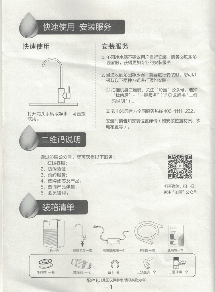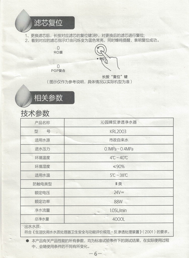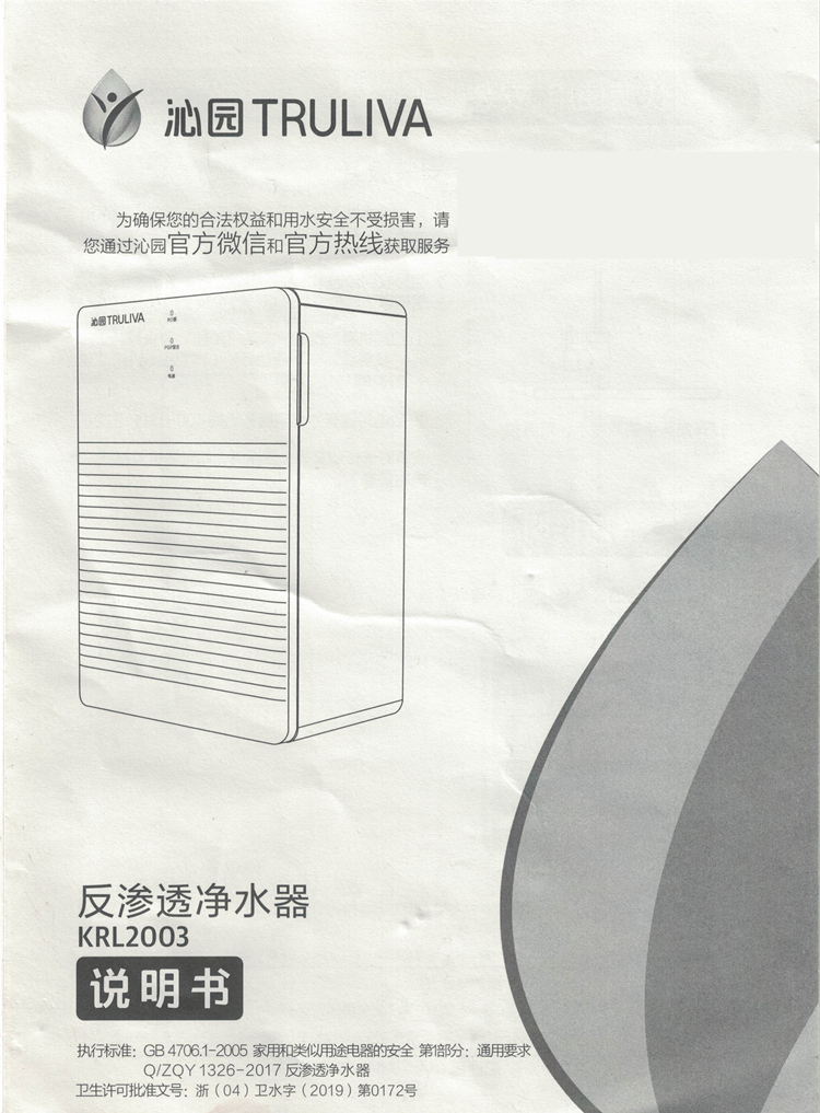 沁园KRL2003反渗透净水器说明书