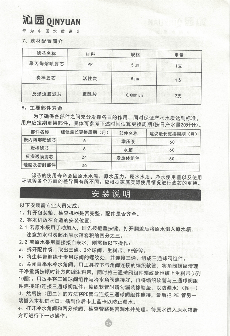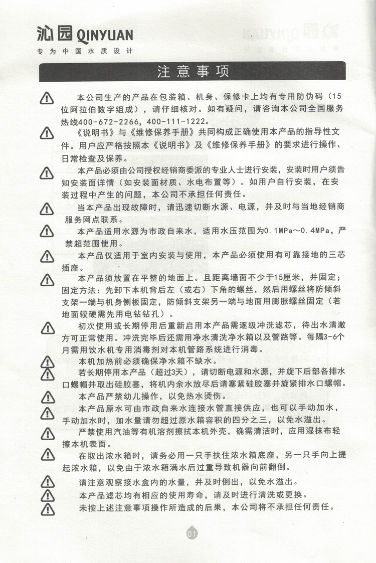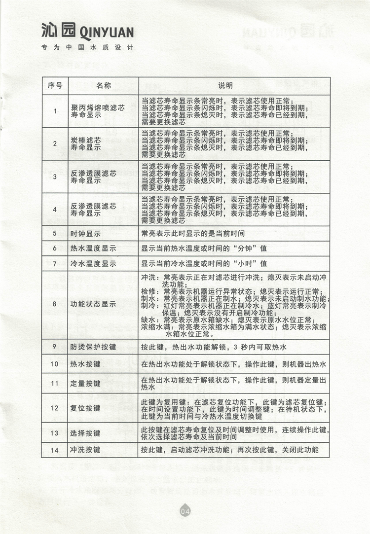 沁园QZ-RD301直饮机说明书及故障代码