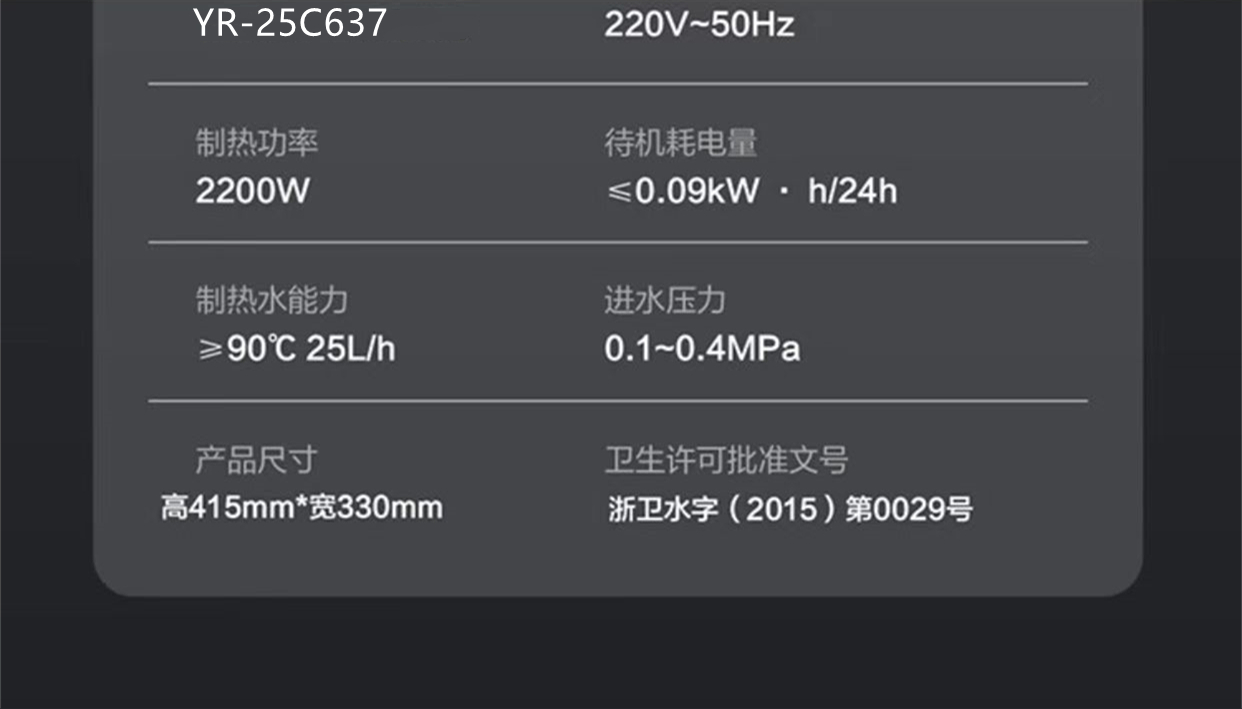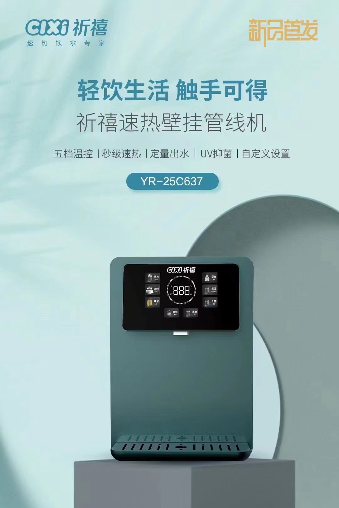 新品首发 祈禧YR-25C637速热壁挂管线饮水机