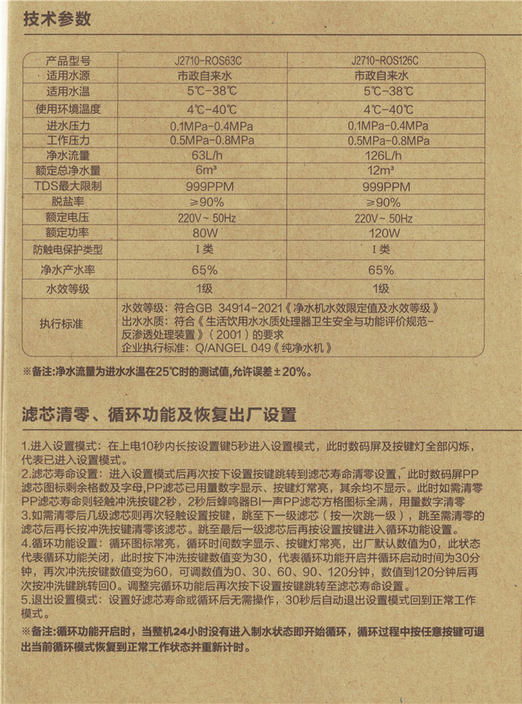 安吉尔商用净水机J2710-ROS63C/ROS126C说明书